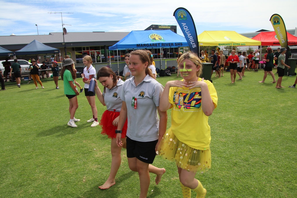 Sweltering conditions did not deter many of the Years 9 to 12 students to participated in the annual Athletics Carnival on Friday. The turn-out was lower than anticipated, but the competitors engaged in the many different disciplines with enthusiasm and the traditional Margaret River spirit of friendly, positive competition, camaraderie, and fun. Most students wore their house colour with pride. The students rotated between shot-pot, 100-, 200-, 400- and 800-meter runs, long, triple and high jump, javelin, discus, and a series of fun events. The day closed with the traditional 100-meter race with handicap. Huge thanks go to Berin Sluiter and the Physical Education department for the meticulous and careful organisation of the day, the Cert II Sports and Recreation students for their dedication and outstanding leadership throughout the day, and all teachers at Margaret River SHS that gave up their classrooms, took and wrote relief lessons and worked extra time to help with set up and clean up.