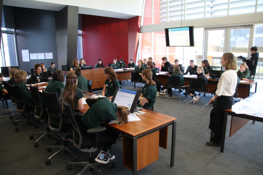 On Wednesday, 25 August, the Shire of Augusta Margaret River invited the Margaret River Senior High School student council to review the Youth Action Plan. Shannon Walker, Community Development Trainee and former MRSHS head student, welcomed the 33 students to the AMR Council Chamber and introduced the Shire’s Chief Executive Officer (CEO), Stephanie Addison-Brown. Stephanie told the students about her role as being responsible for the management of the Shire and the employment, supervision and direction of all Shire employees. She also talked about her journey to become CEO. The students then took on her role in a mock CEO activity and reviewed the draft Youth Action Plan. In teams, they debated the feasibility of and amendments to the plan. The suggestions were submitted and will be collated by Shannon for presentation to the Shire Council. After morning tea, the students participated in a mock council meeting being briefed on Shire initiatives from Dylan Brown, Recreation Operations Manager, and Katie Biggs, Sustainability Planning Officer. The students debated the issues of making recreational facilities more accessible and sustainability initiatives of the Shire. The Shire generously provided lunch, and the students were able to meet and interact with the Shire councillors. After lunch, the students were given a tour of the Shire facilities before attending the Shire Council meeting. Four students were given the opportunity to ask questions to the Shire Council as part of the ordinary meeting. This incursion was a highlight of the student leadership year. The students returned to the school with a new appreciation of the excellent work undertaken by the Shire. Margaret River Senior High School wishes to thank the Shire for the outstanding partnership in developing an understanding of Shire operation within our youth. Special thanks are forwarded to the Shire Council for their time and commitment to listen to the students’ suggestions and ideas, Stephanie Addison-Brown, Jason Cleary, Coordinator Community Development and Planning, Katie Taylor, Community Development Officer and Shannon Walker. What an excellent real-life learning opportunity for these student leaders!