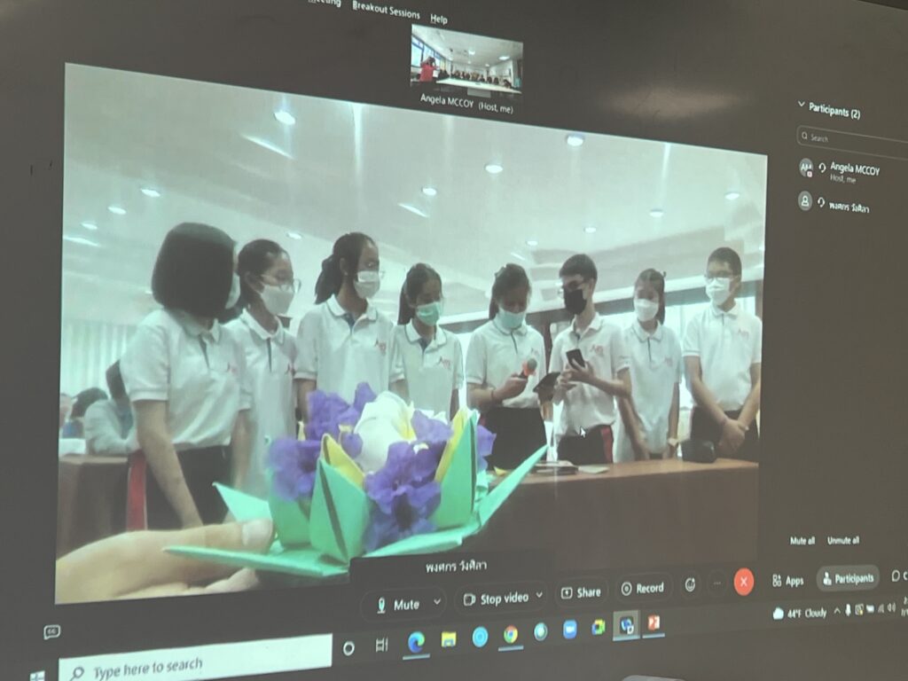 On Tuesday, December 7th, twenty-two Year 7 and Year 8 Asian Languages students enjoyed the exchange activities with Phayaopittayakhom sister school from Thailand through web conference. The Thai’s students showed how to make Krathong (floating lantern) and Thai dance movements for Loy Krathong Festivals and MRSHS students presented Margaret River and Districts Agricultural Show to their buddies.