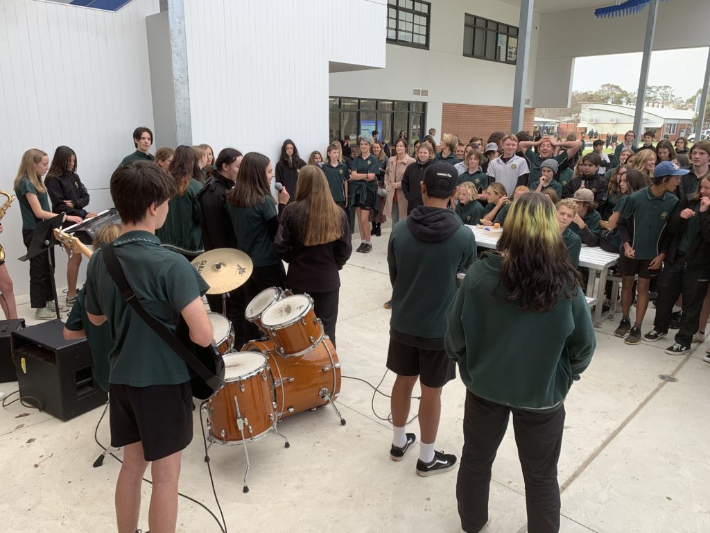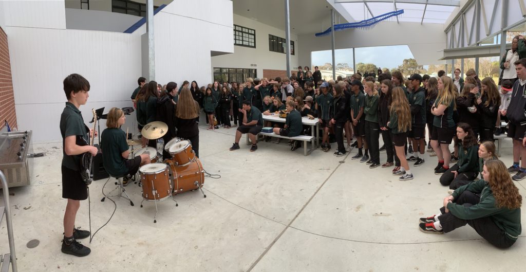 Many thanks to music teacher Danielle Mayors and the Year 9 music class for providing the first Music @ Lunchtime performance of 2020. The students played three songs for the assemblied crowd and earned applause and cheers. This student council initiative aims at re-establishing the culture of positive interaction and belonging that has always been characteristic of this outstanding country school. After this success, the student council is looking forward to Terms 3 and 4 to plan for more student performances.